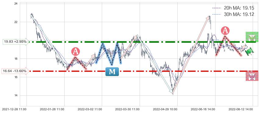 ♘ 阻力价格位19.83,可信任强度87.74%,距离最后交易2022-08-12 14:00形成的收盘价格19.26相差 +2.95%