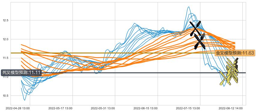 ➢ 55小时均线于(07-12 13:00: 12.28)形成【死叉】基于【死叉历史模型】预测死叉后最低波谷价格: 11.52, 死叉后最低价格10.69,已经下跌超出预测最低波谷价格, 预期反弹