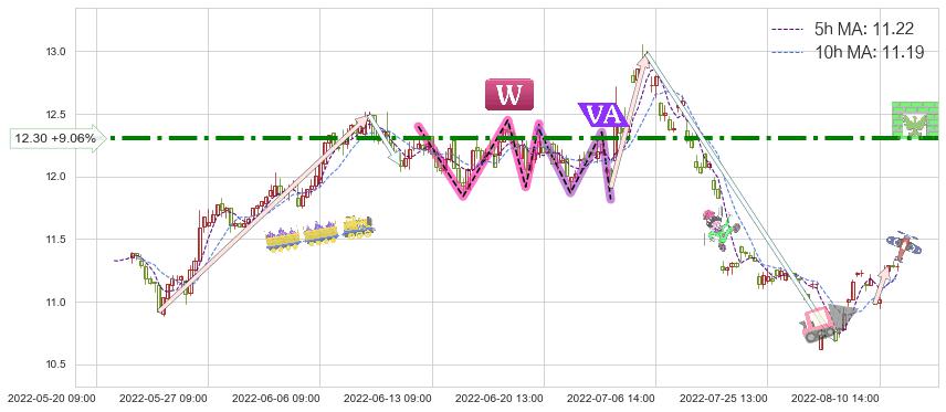 2022-06-10: 第一阻力位12.30强力阻拦了上升趋势,成功阻止了价格的继续上涨。