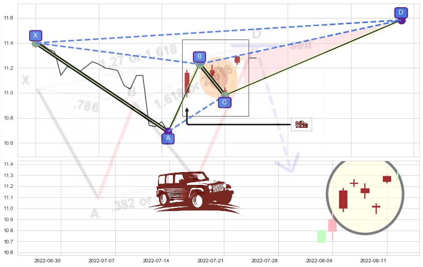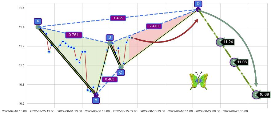 ➣ 未完成【蝴蝶】形态起点X: 07-20:13, 已到达C点: 08-10:13, 预测最终D点: 08-18:13, 共57交易小时