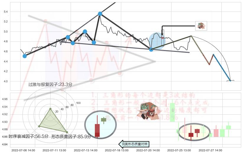 ➢ 下跌螺旋桨 🔜 扩散三角反转临近支撑猜想转换阻力下跌 综合量化分数:46.39 【中性】