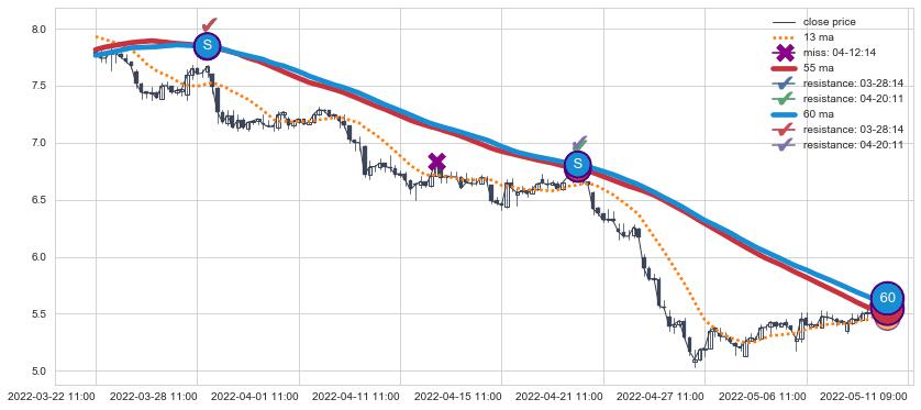 ➣ 13小时均线于(07-18 14:00: 5.45)形成【金叉】基于【金叉历史模型】预测金叉后最高波峰价格: 5.61, 金叉后最高价格5.92,已经上涨超出预测最高波峰价格, 预期回调