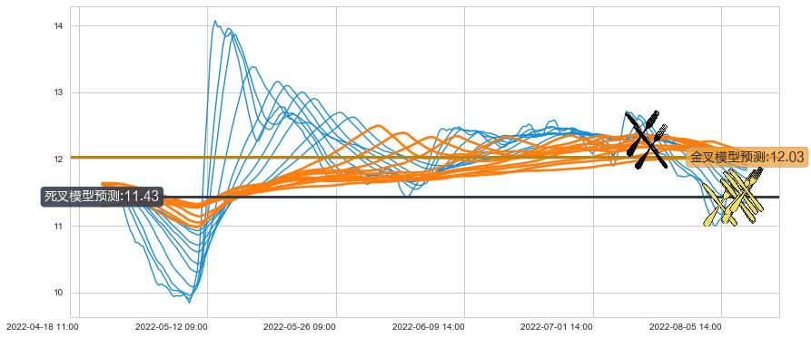 ➣ 60小时均线于(07-15 13:00: 12.36)形成【死叉】基于【死叉历史模型】预测死叉后最低波谷价格: 11.38, 死叉后最低价格10.94,已经下跌超出预测最低波谷价格, 预期反弹
