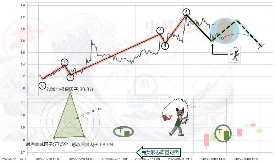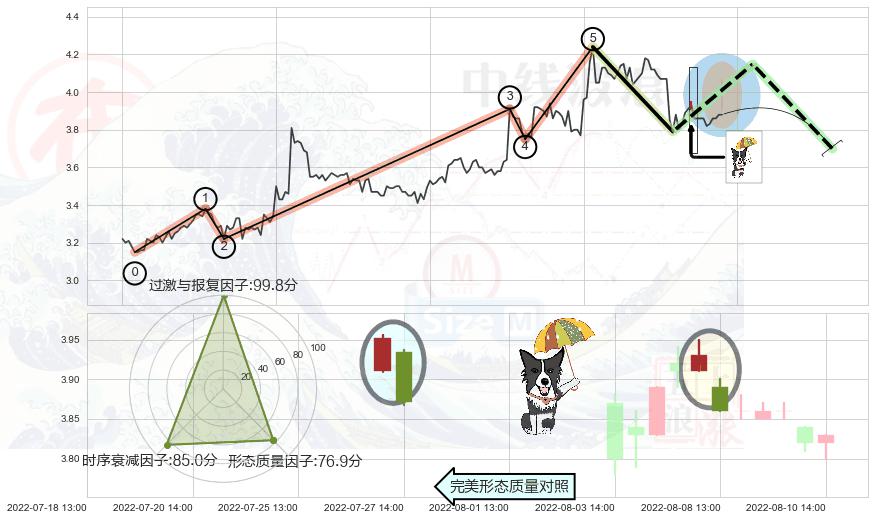 ➢ 预测:2022-08-15 14:00,【小幅回撤】稳定目前上涨趋势的前提下,预测价格:3.839