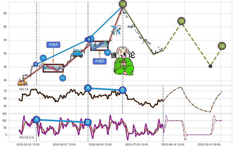 ➢ 吊颈线(上吊线) 🔜 缠论买卖点2卖回调下跌至3卖 综合量化分数:47.59 【中性】