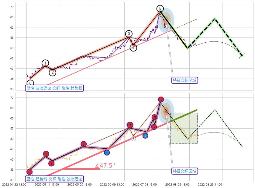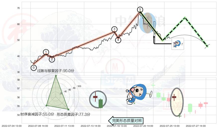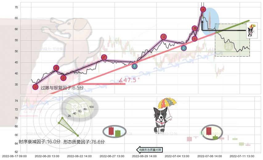 从2022-04-25 14:00至2022-07-18 13:00,共包含217个小时,阶段股价上涨54.06%,阶段股价变动位移路程比: 1 : 4,上涨趋势角度: 47.5