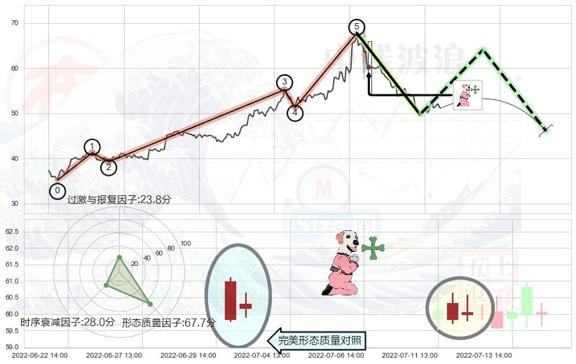➢ 看跌(高位倒锤头)流星线 🔜 波浪理论上涨浪:浪5回调拐点 综合量化分数:47.73 【中性】