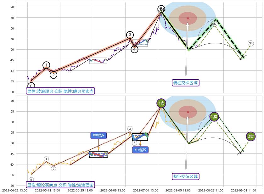 ➣ 缠论买卖点:猜想2卖持续蓄力下跌至3卖 → 下跌 → 风险信号 → 小趋势跟踪