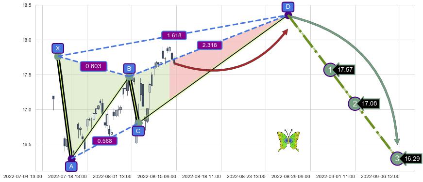 ➣ 未完成【蝴蝶】形态起点X: 07-07:14, 已到达C点: 08-02:14, 预测最终D点: 08-25:11, 共102交易小时
