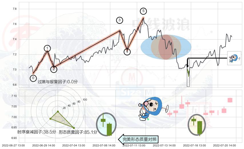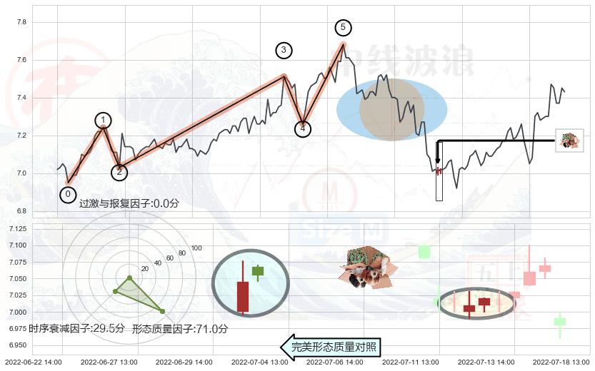➢ 🕰 价格走势在2022-07-11 14:00:00至2022-07-13 14:00:00期间形成低档五阳线,残存影响值:1.05