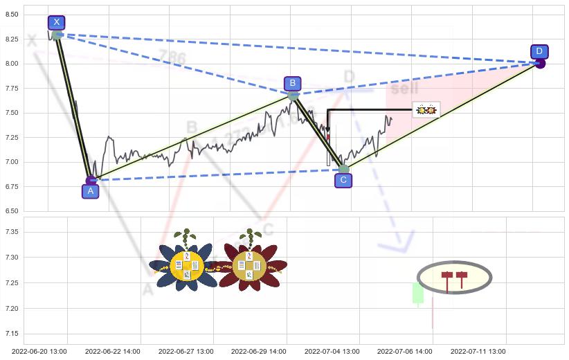 ➣ 谐波伽利:猜想c点下沉接近b点后强支撑来临拉升上涨(均值回复)