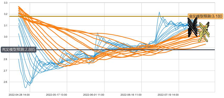➣ 60小时均线于(08-01 14:00: 3.094)形成【死叉】基于【死叉历史模型】预测死叉后最低波谷价格: 2.884, 死叉后最低价格2.970,尚未达到预测最低波谷价格, 预期继续下跌