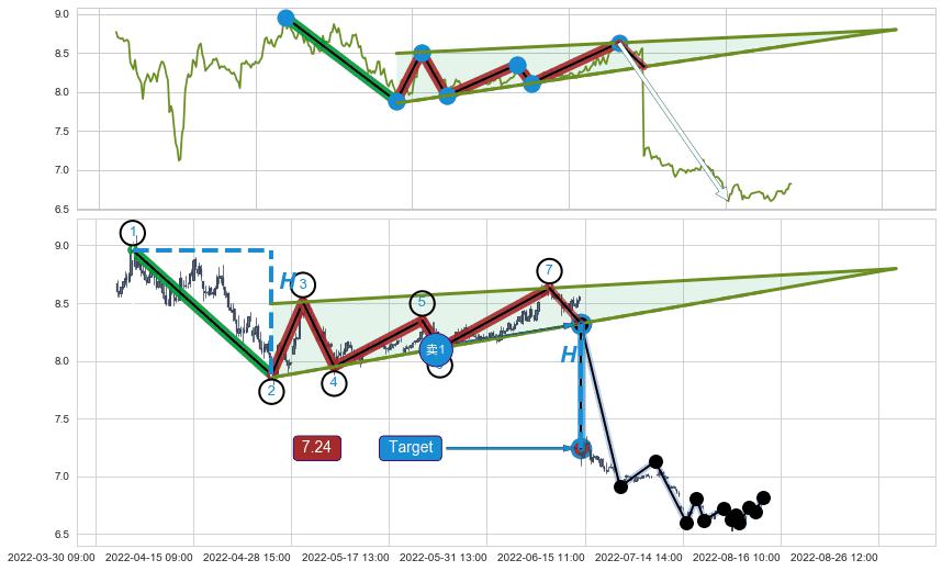 ➢ AI预测: 假定反转启动后, 第❷目标位置(10-28:11, 7.90)