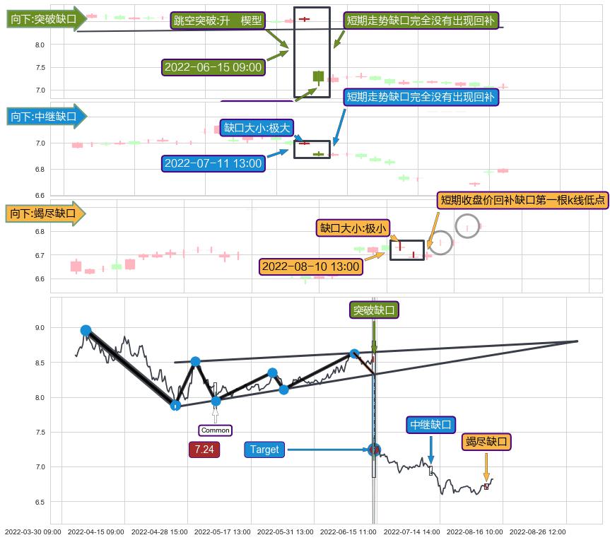 ➢ 2022-08-10 13:00形成:向下跳空【竭尽】缺口