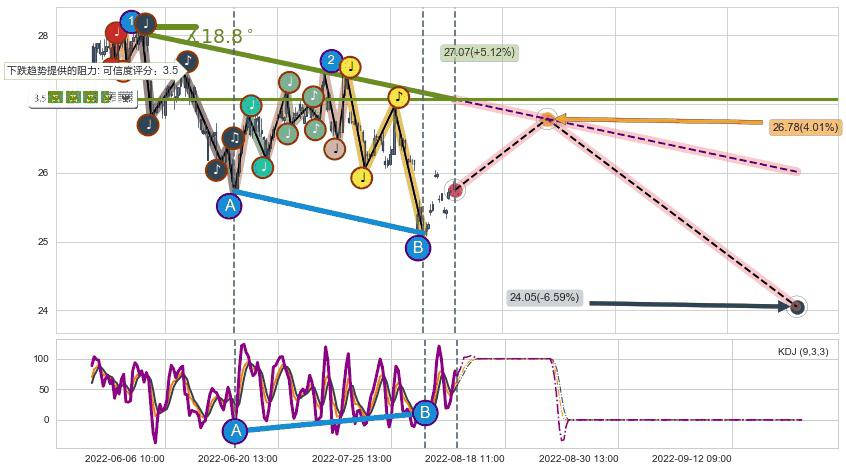 ♘ 阻力价格位26.95,可信任强度92.68%,距离最后交易2022-08-12 14:00形成的收盘价格25.75相差 +4.65%