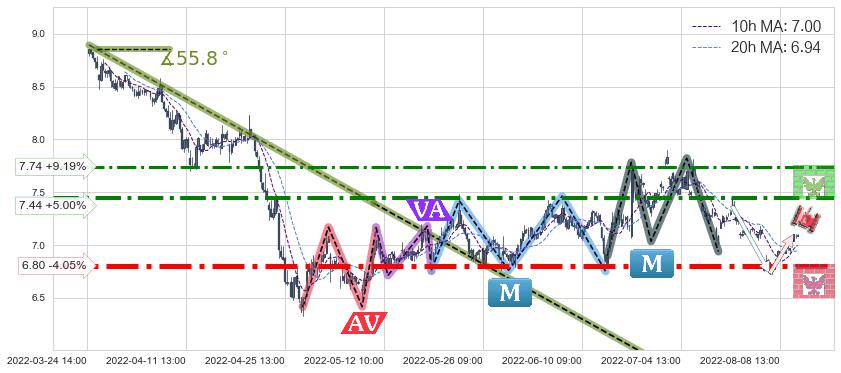 ♘ 阻力价格位7.74,可信任强度68.37%,距离最后交易2022-08-12 14:00形成的收盘价格7.09相差 +9.19%