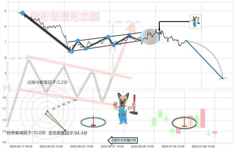 ➢ 下跌螺旋桨 🔜 升旗形支撑破位转换阻力下跌 综合量化分数:43.46 【偏空】