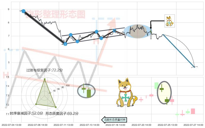 ➢ 🕰 价格走势在2022-07-22 14:00:00至2022-07-25 13:00:00期间形成下跌螺旋桨,残存影响值:-6.15