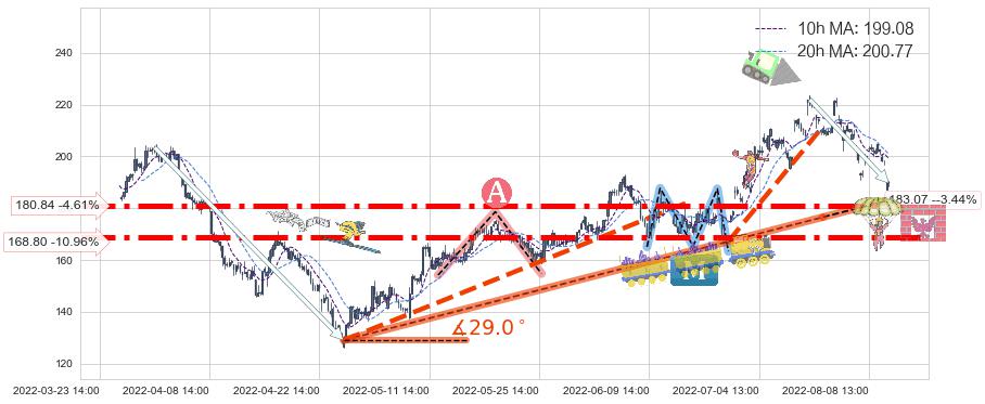 ♘ 支撑价格位180.84,可信任强度85.39%,距离最后交易2022-08-12 14:00形成的收盘价格189.58相差 -4.61%