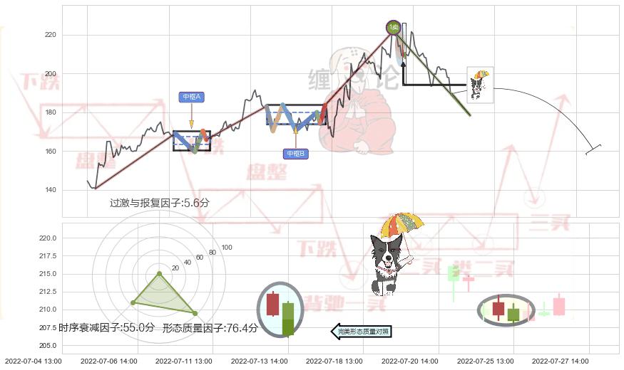 ➢ 🕰 价格走势在2022-07-14 13:00:00至2022-07-18 13:00:00期间形成高档五阴线,残存影响值:-1.01
