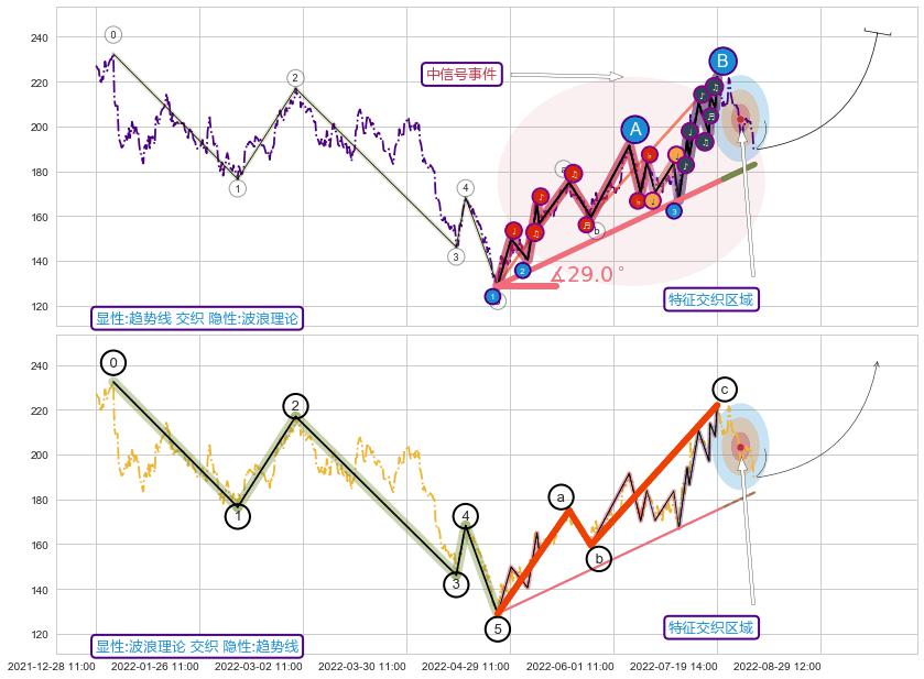 ➢ 趋势线属【中级别信号事件】波浪理论属【长级别信号事件】中长周期组合信号事件,中长事件长度比42.64%