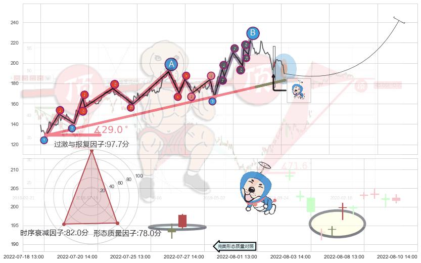 ➢ 🕰 价格走势在2022-08-04 14:00:00至2022-08-05 13:00:00期间形成上涨螺旋桨形态,残存影响值:7.48