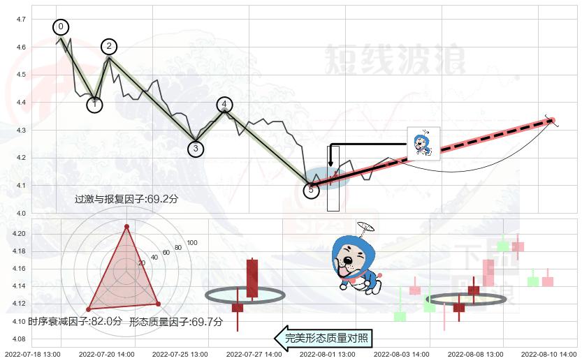 ➢ 🕰 价格走势在2022-08-04 14:00:00至2022-08-05 13:00:00期间形成上涨螺旋桨形态,残存影响值:6.54