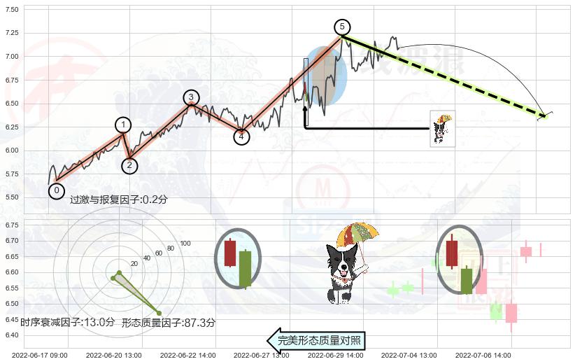 ➢ 🕰 价格走势在2022-07-08 14:00:00至2022-07-11 13:00:00期间形成下跌螺旋桨,残存影响值:-2.21