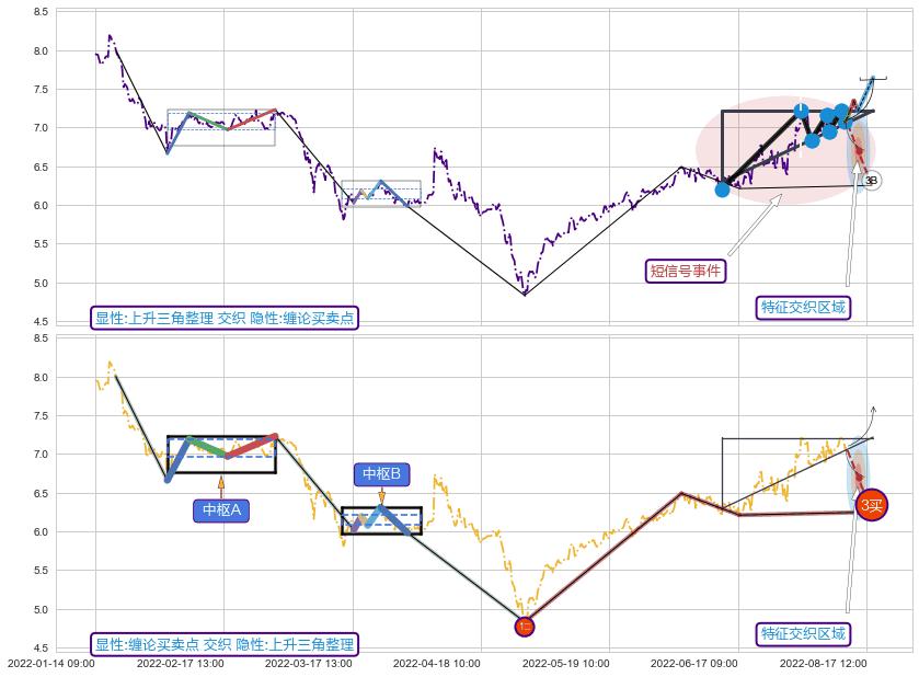 ➢ 上升三角整理属【短级别信号事件】缠论买卖点属【长级别信号事件】长短周期组合信号事件, 短长事件长度比17.22%