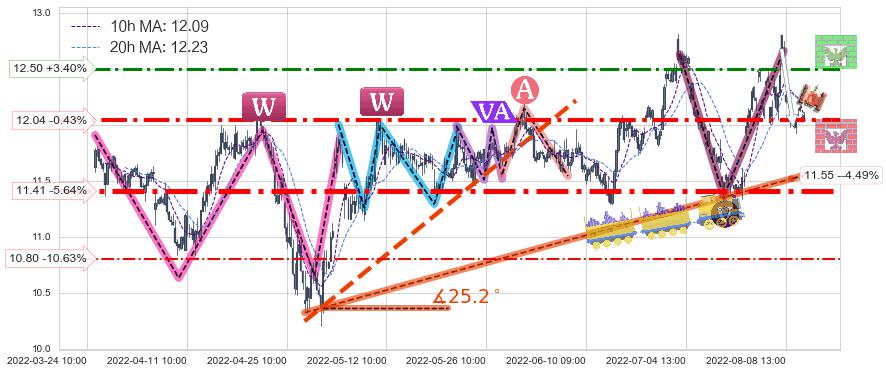 ♘ 阻力价格位12.50,可信任强度64.77%,距离最后交易2022-08-12 14:00形成的收盘价格12.09相差 +3.40%