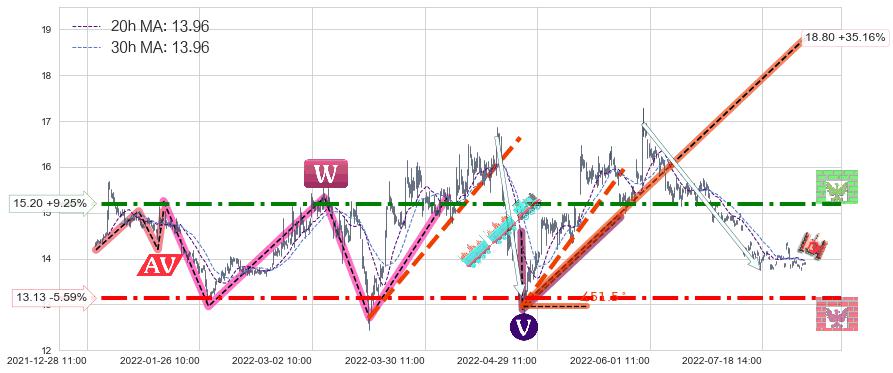 ♞ 20小时均线:13.96,30小时均线:13.96→ 快线<慢线