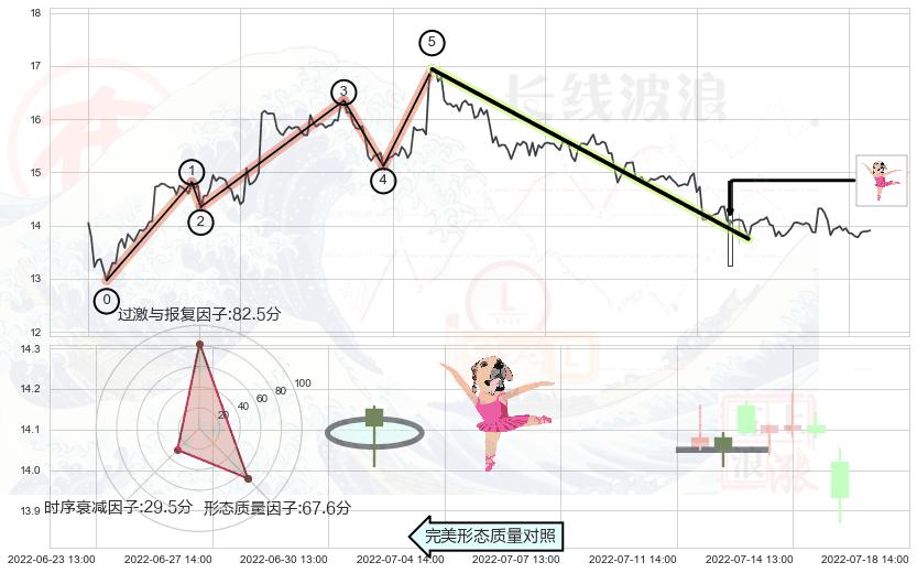 ➢ 🕰 价格走势在2022-07-19 13:00:00至2022-07-19 14:00:00期间形成上涨螺旋桨形态,残存影响值:6.10