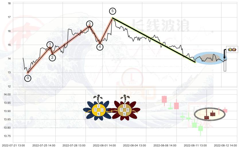 ♘ 支撑价格位13.13,可信任强度78.75%,距离最后交易2022-08-12 14:00形成的收盘价格13.91相差 -5.59%