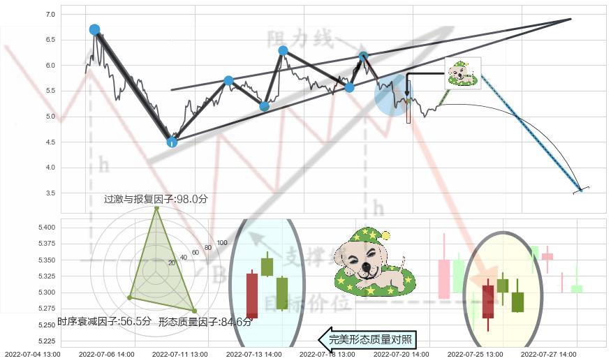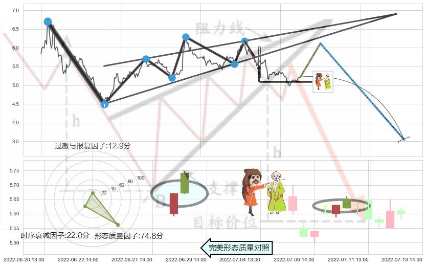 ➢ 🕰 价格走势在2022-07-22 14:00:00至2022-07-25 14:00:00期间形成黄昏之星(夜星),残存影响值:-3.46