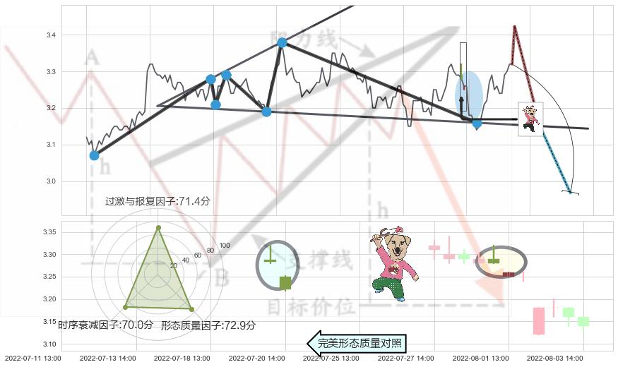 ➢ 🕰 价格走势在2022-08-03 13:00:00至2022-08-03 14:00:00期间形成双针探底,残存影响值:3.85
