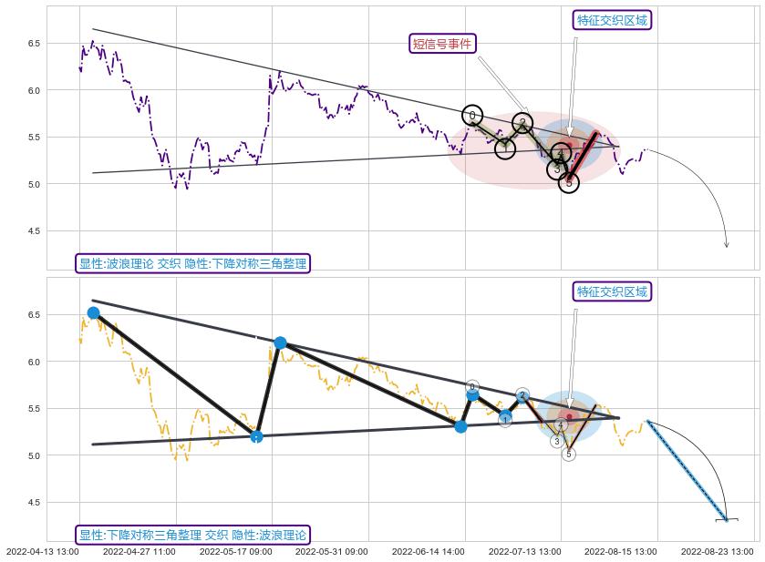 ➢ 波浪理论属【短级别信号事件】下降对称三角整理属【长级别信号事件】长短周期组合信号事件, 短长事件长度比27.78%