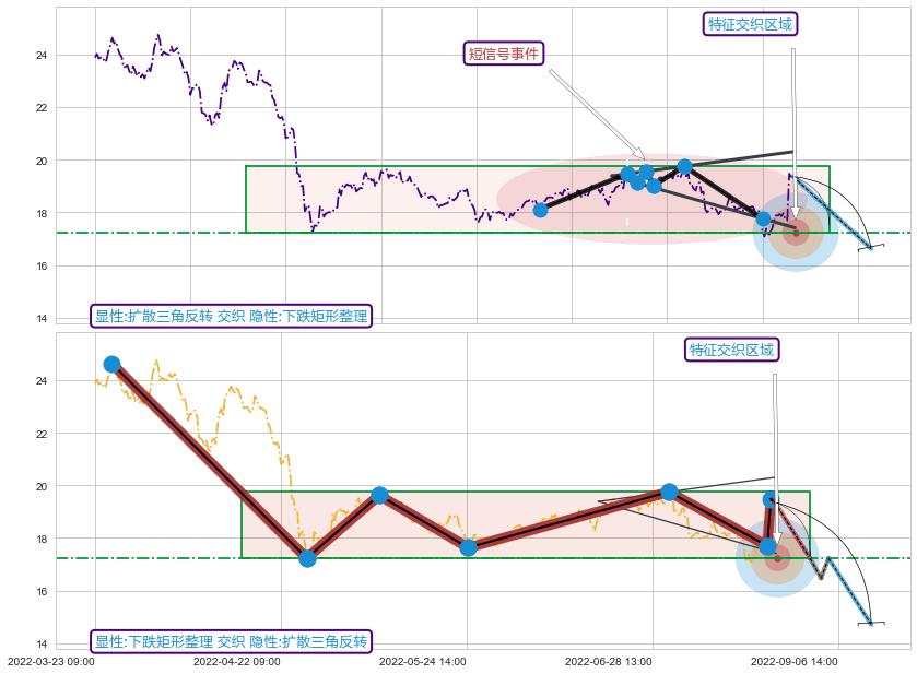 ➢ 扩散三角反转属【短级别信号事件】下跌矩形整理属【长级别信号事件】长短周期组合信号事件, 短长事件长度比32.96%