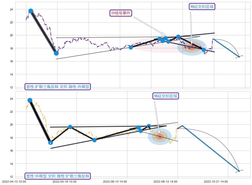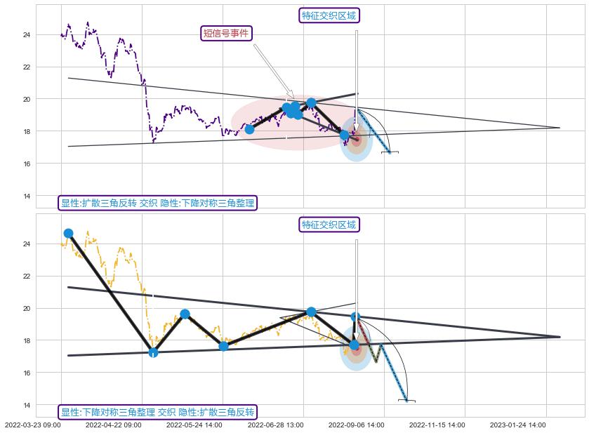 ➢ 扩散三角反转属【短级别信号事件】下降对称三角整理属【长级别信号事件】长短周期组合信号事件, 短长事件长度比32.96%