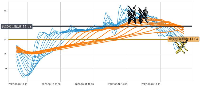 ➢ 45小时均线于(06-30 14:00: 12.70)形成【死叉】基于【死叉历史模型】预测死叉后最低波谷价格: 11.92, 死叉后最低价格10.25,已经下跌超出预测最低波谷价格, 预期反弹