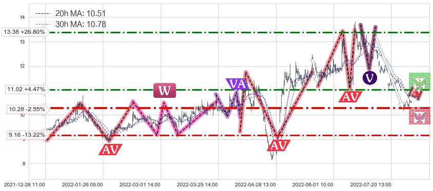 ♞ 20小时均线:10.51,30小时均线:10.78→ 快线<慢线