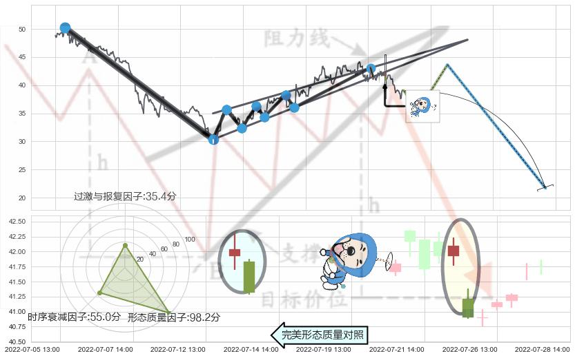 ➢ 下跌螺旋桨 🔜 升楔型支撑破位转换阻力下跌 综合量化分数:39.33 【偏空】