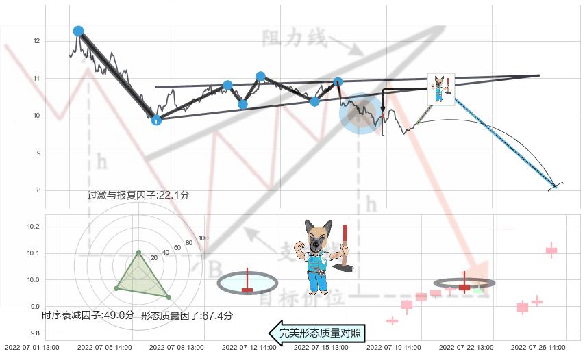 ➢ 🕰 价格走势在2022-07-08 14:00:00至2022-07-11 13:00:00期间形成下跌螺旋桨,残存影响值:-3.16
