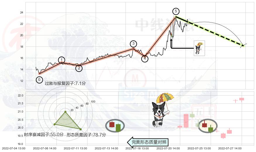 ➢ 🕰 价格走势在2022-07-28 14:00:00至2022-07-29 13:00:00期间形成射击之星形态,残存影响值:-6.34