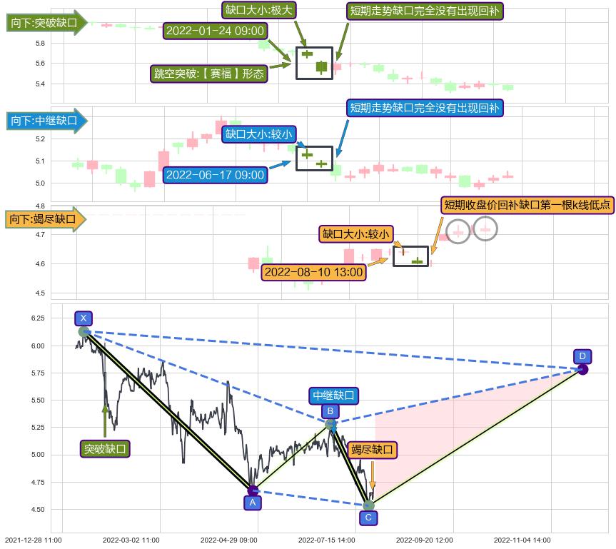 ➢ 2022-08-10 13:00形成:向下跳空【竭尽】缺口