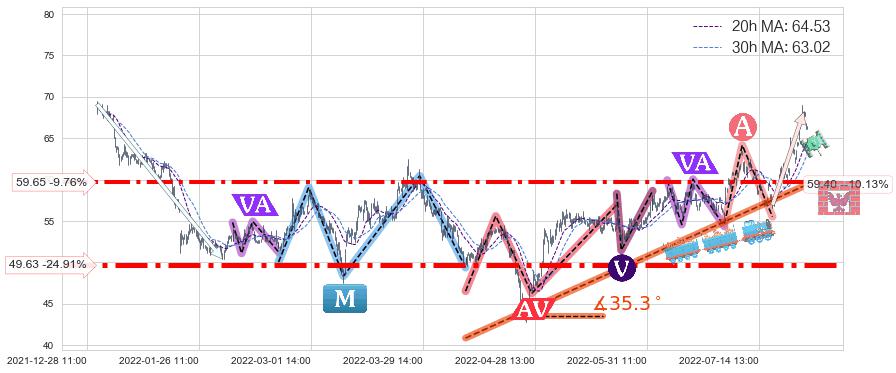 ♞ 20小时均线:64.53,30小时均线:63.02→ 快线>慢线