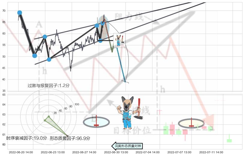 ➣ 下跌螺旋桨 + 升楔型临近支撑猜想转换阻力下跌信号叠加后【目标达成率】中等,【看空】信号叠加【存续影响中等】