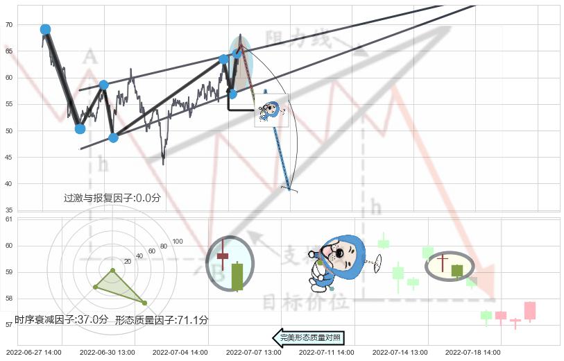 ➢ 🕰 价格走势在2022-07-07 13:00:00至2022-07-07 13:00:00期间形成看跌(高位倒锤头)流星线,残存影响值:-2.31