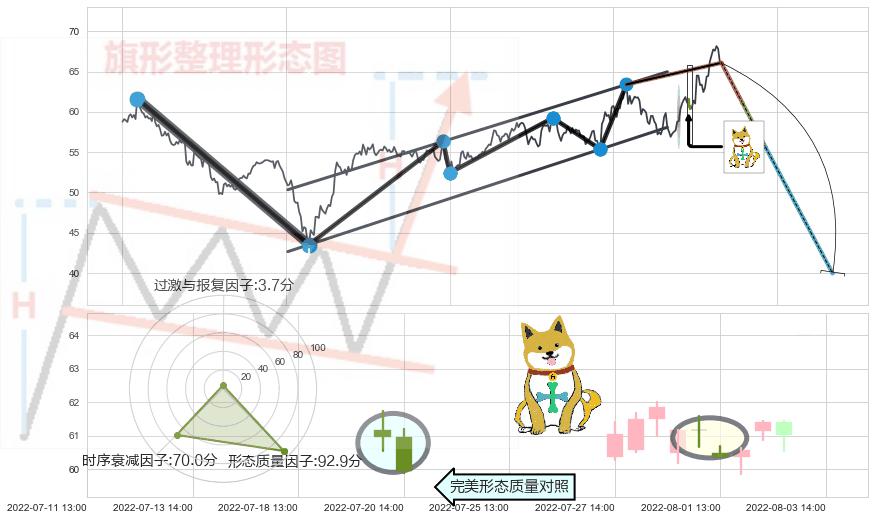 ➢ 看跌(高位倒锤头)流星线 🔜 升旗形临近支撑猜想转换阻力下跌 综合量化分数:46.67 【中性】