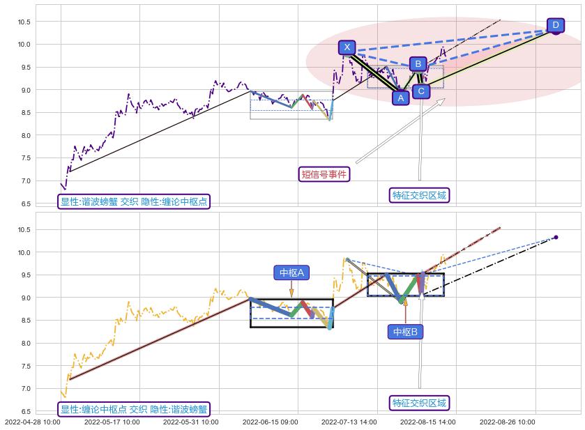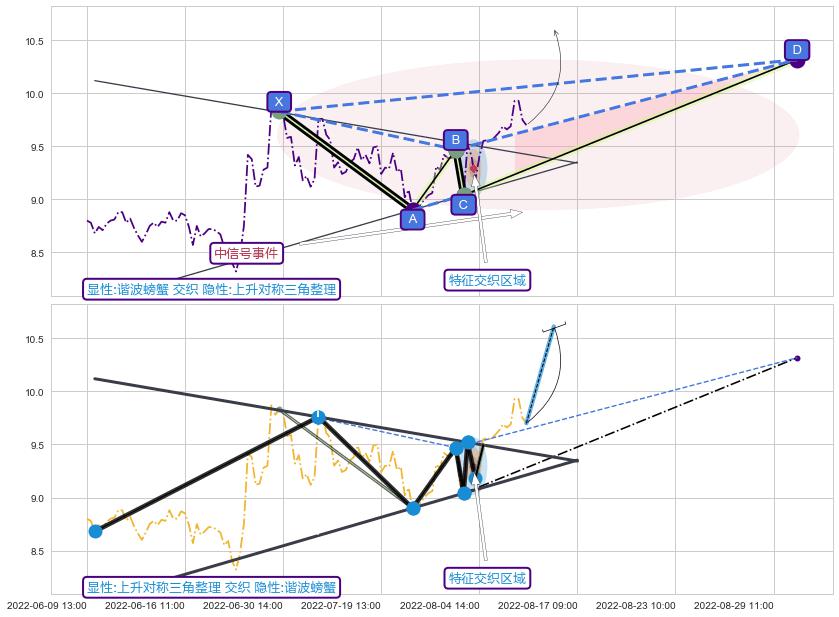 ➢ 未完成【螃蟹】形态起点X: 06-30:13, 已到达C点: 08-02:14, 预测最终D点: 08-30:11, 共130交易小时