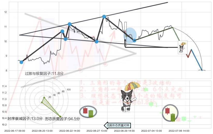 ➣ 下跌螺旋桨 + 扩散三角反转临近支撑猜想转换阻力下跌信号叠加后【目标达成率】中等,【看空】信号叠加【存续影响中等】